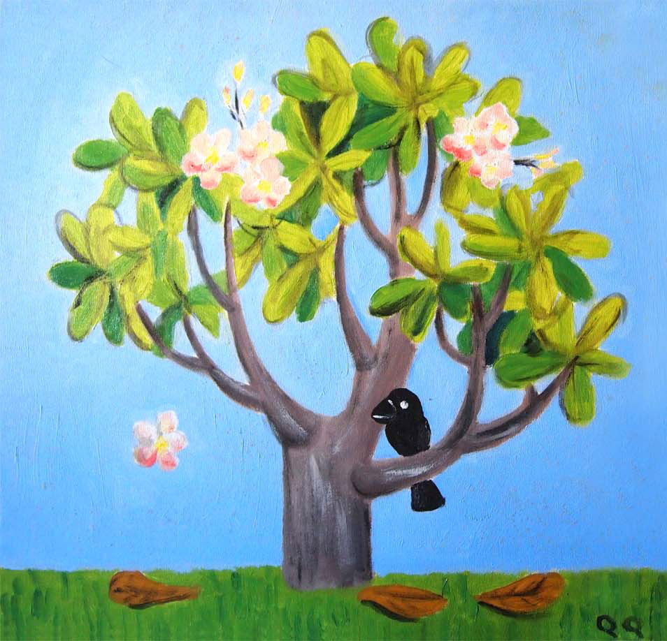 Crow on Frangipani Tree.